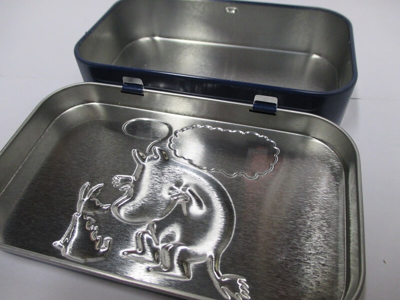 丁番式の蓋でエンボス加工がされています。