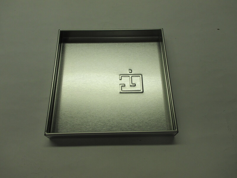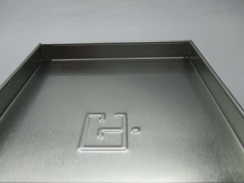 蓋も胴体も折箱のように角ばっている缶ですが、